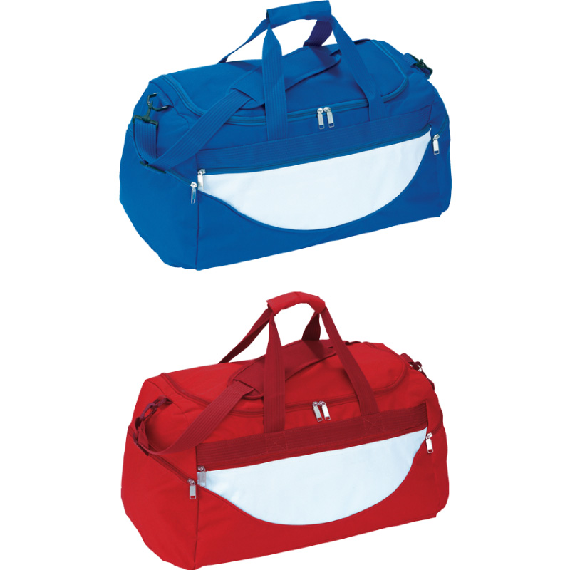66 x 36 x 29 cm. Capacidad 55 litros. Aprox. Polyester 600D. Compartimento principal con cierre, compartimento al frente de otro color con cierre, bolsillos laterales con cierre, asas reforzadas, bandolera ajustable y desmontable con hombrera.