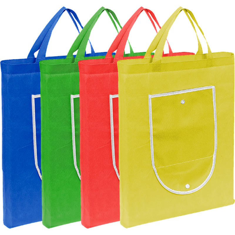 40 x 47.5 cm (abierta) / 20,5 x 12 cm (cerrada)-Non-woven. Bolsa que posee un bolsillo frontal con vivos blancos alrededor y un cierre de botón.