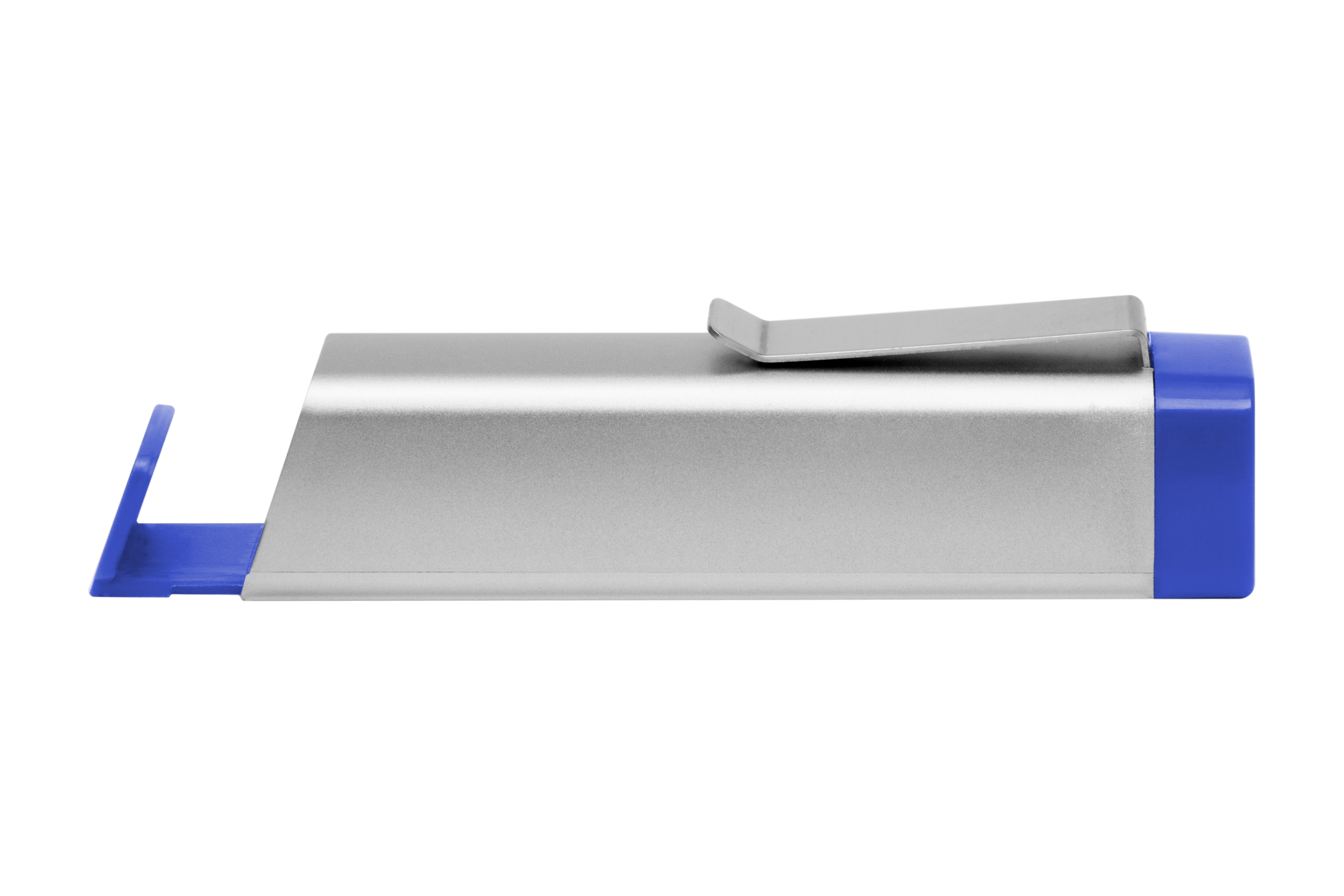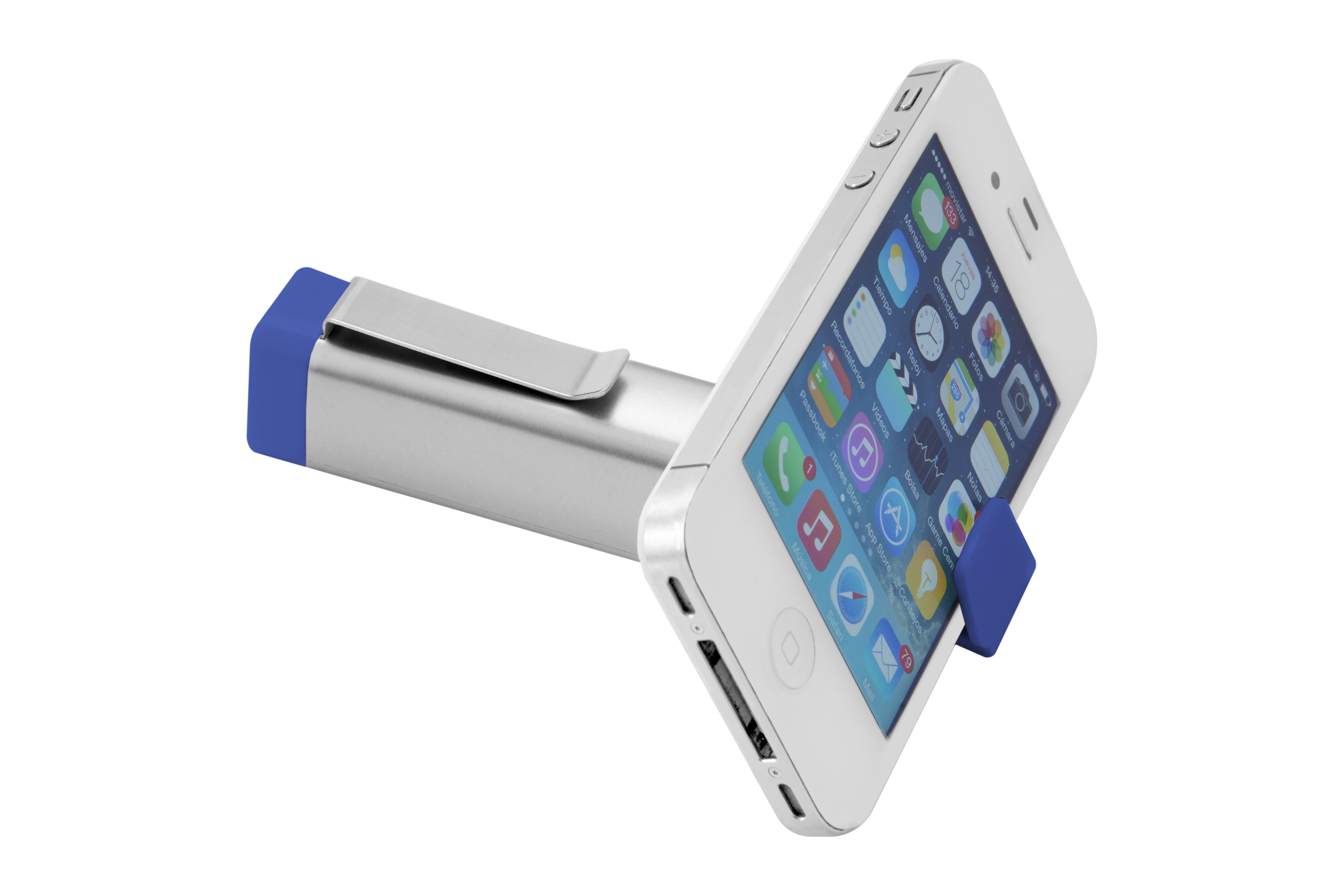 10,4 x 2,5 cm. Capacidad 2.200 MAH. Plástico. Cargador móvil para celular, MP3 y cámaras digitales. Botón de encendido y luces indicadoras de carga. En una de las extremidades se saca un soporte para celular y clip metálico. Con certificación de calidad.