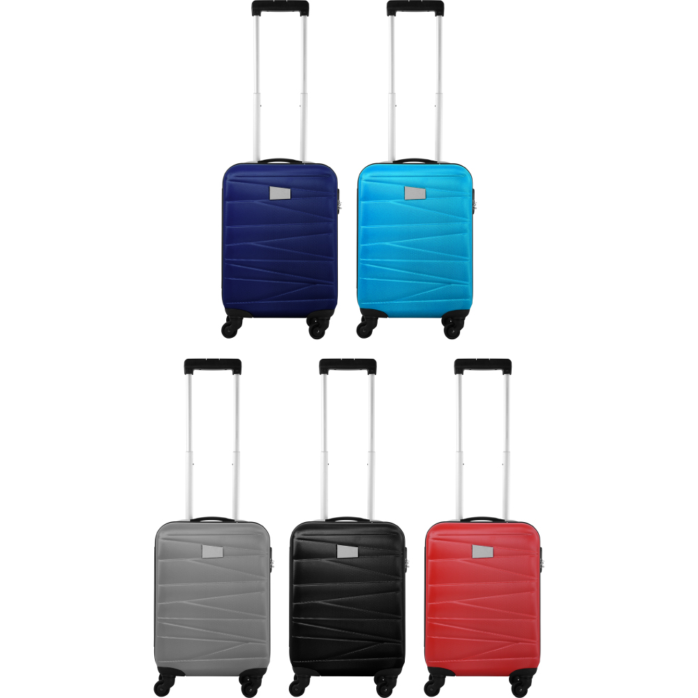 54 x 34 x 20 cm. (total). Capacidad 31 litros (Indica el volumen, NO el peso). ABS. Valija / Maleta pequeña. 4 ruedas con giro 360°. Manija de transporte reforzada. Mango extensible hasta 54 cm. 2 posiciones. Interior: 2 compartimentos principales con cierre y elásticos ajustables. Placa metálica desmontable para grabado (medida: 6 x 4 cm.) Candado incluido con combinación.