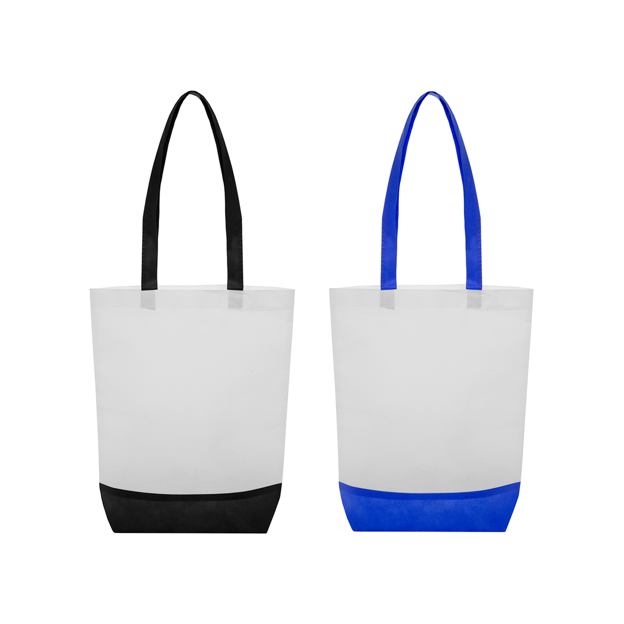 41 x 35 x 10 cm. Cambrel. Bolsa ecológica blanca con detalles de color en asa y base de la bolsa.
