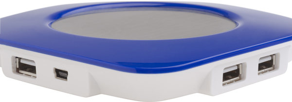 12 x 2 cm. Plástico y aluminio. Base térmica para conservar el calor de mug de aluminio o ceramica . La base alcanza entre 35º y 45º. Retrasa el enfriamiento del líquido, dependiendo del grosor y material de la taza. Entrada de tres puertos USB. 2.5 W 5V.