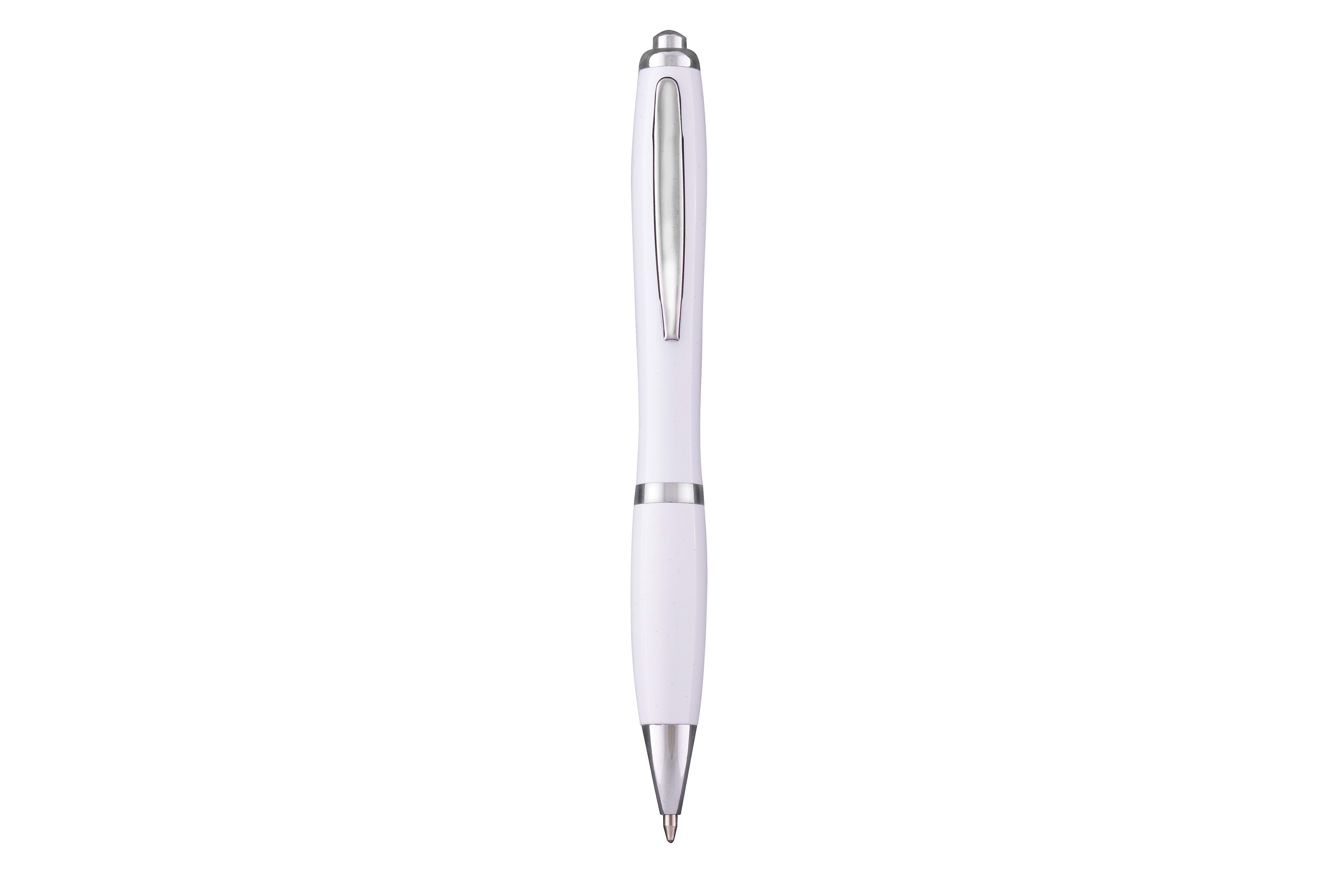 Plástico. Cuerpo de color. Pulsador y puntera plásticos. Clip metálico. Tinta negra.