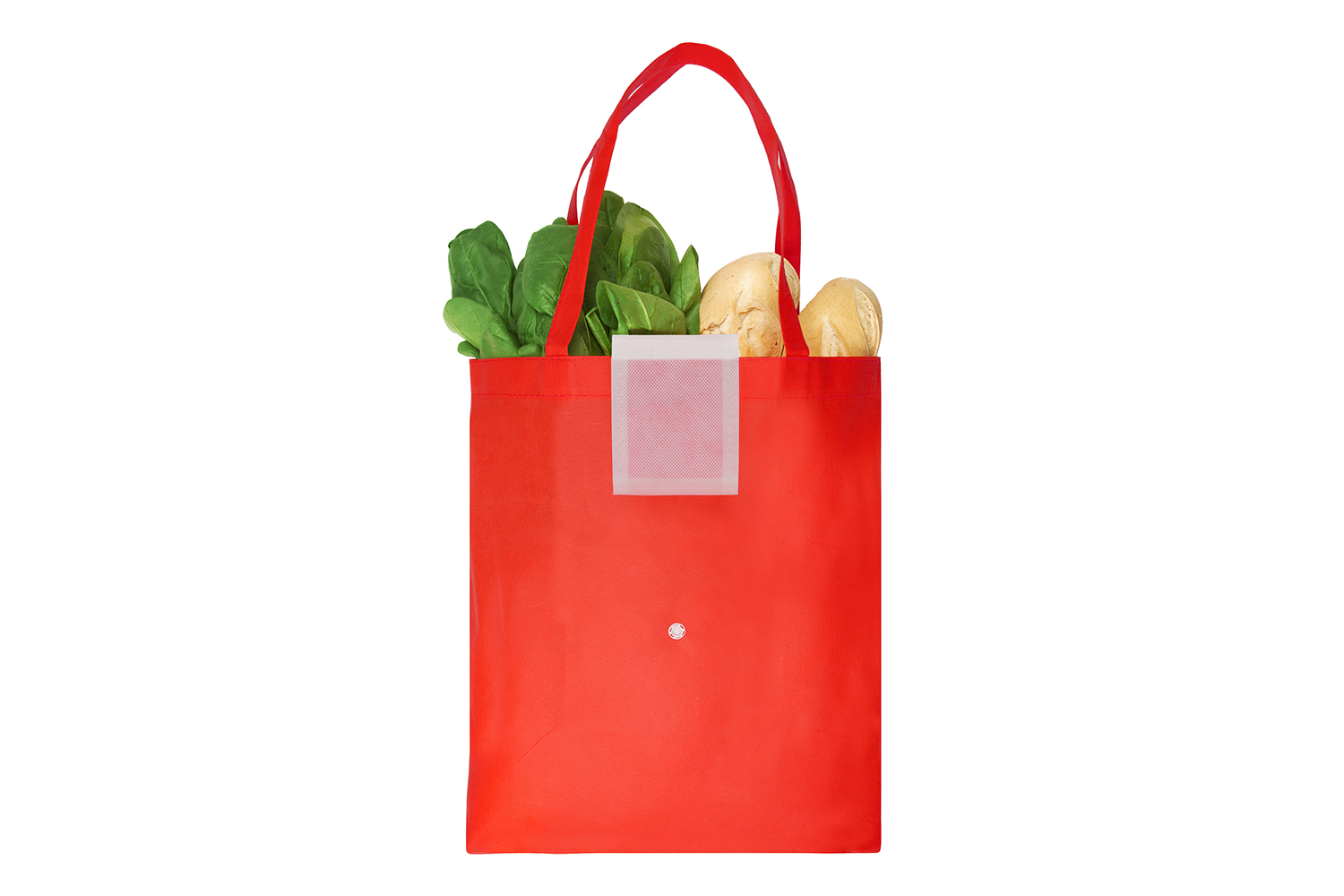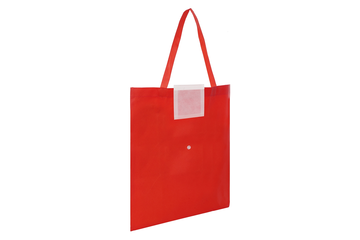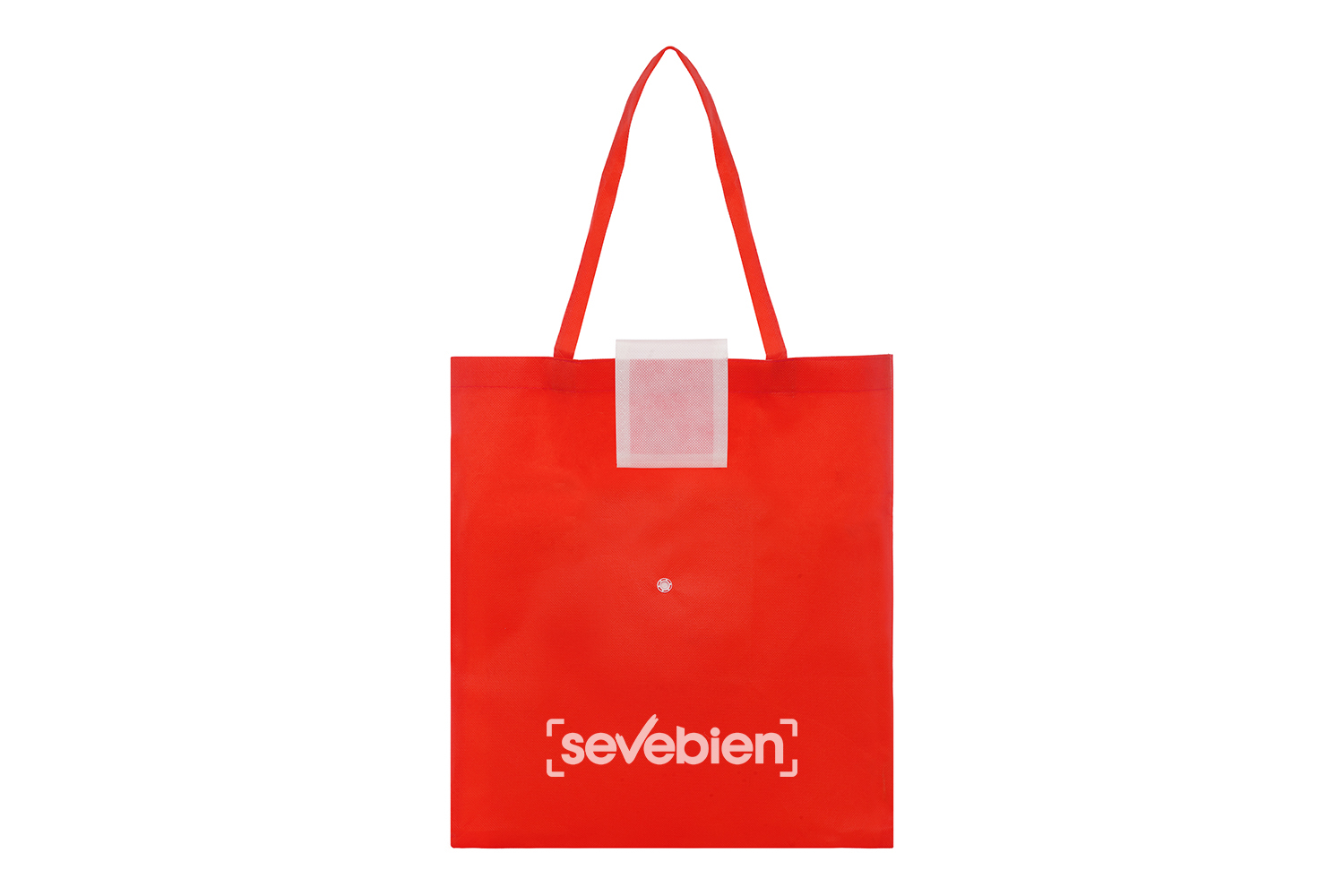 13 x 11 cm. (cerrado) 40 x 34,5 cm. (abierto). Cambrel. Bolsa ecológica, posee una solapa color blanco y botón, lo cual permite que la bolsa se pueda plegar.