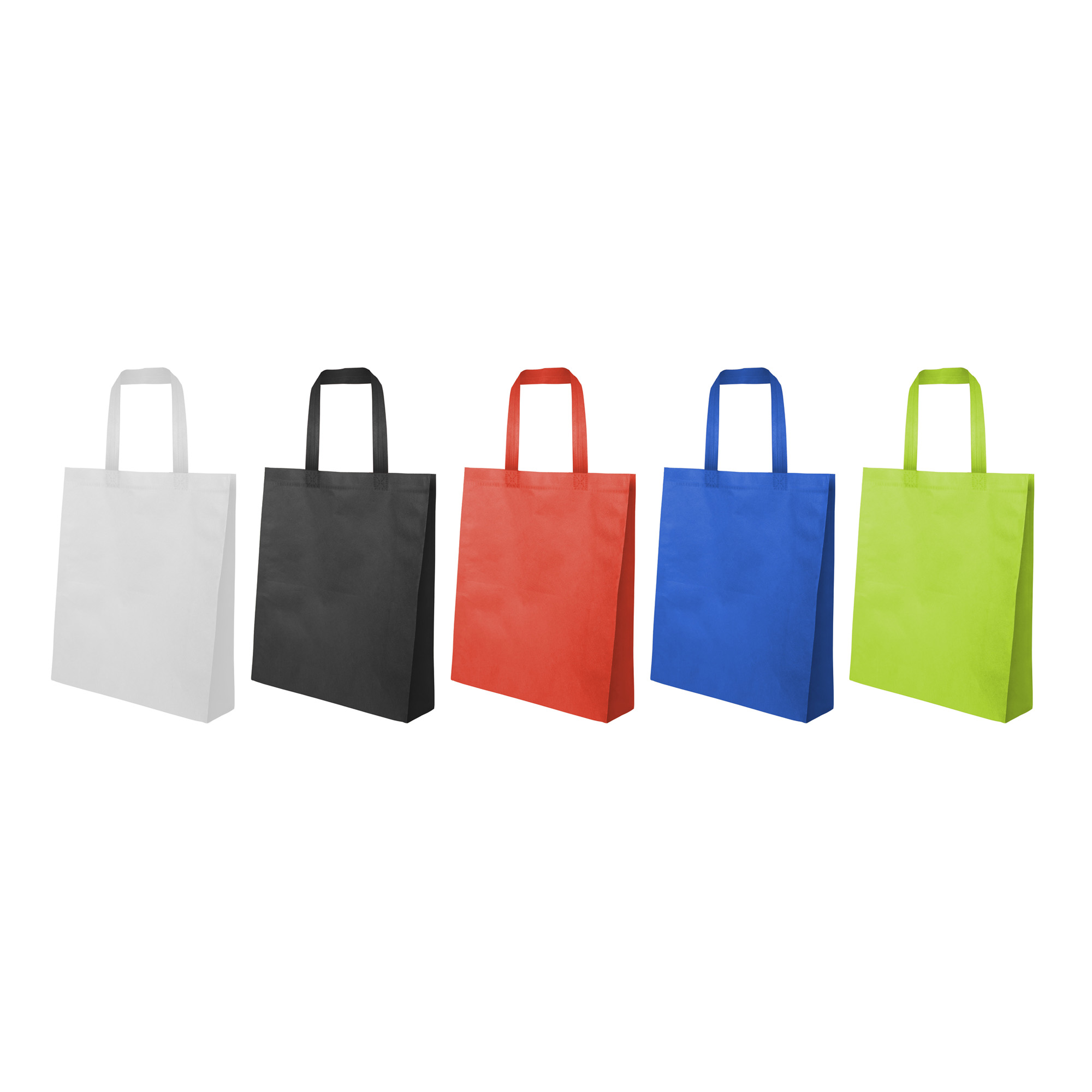25 x 30 x 10 cm. Non-woven. Bolsa reutilizable termosellada no tejida con asa. Fuelle de 10 cm. Soportan hasta 2 kilos.