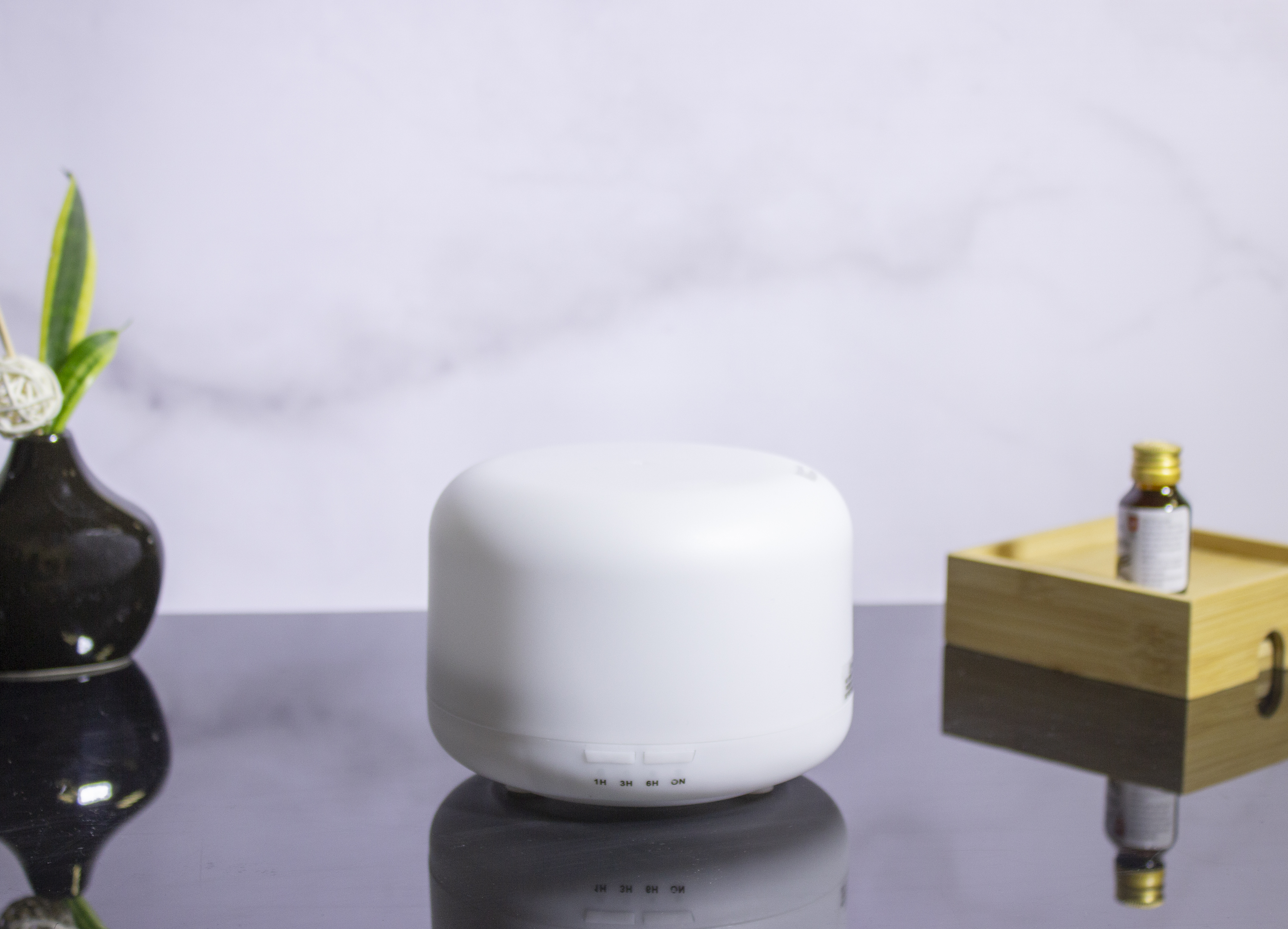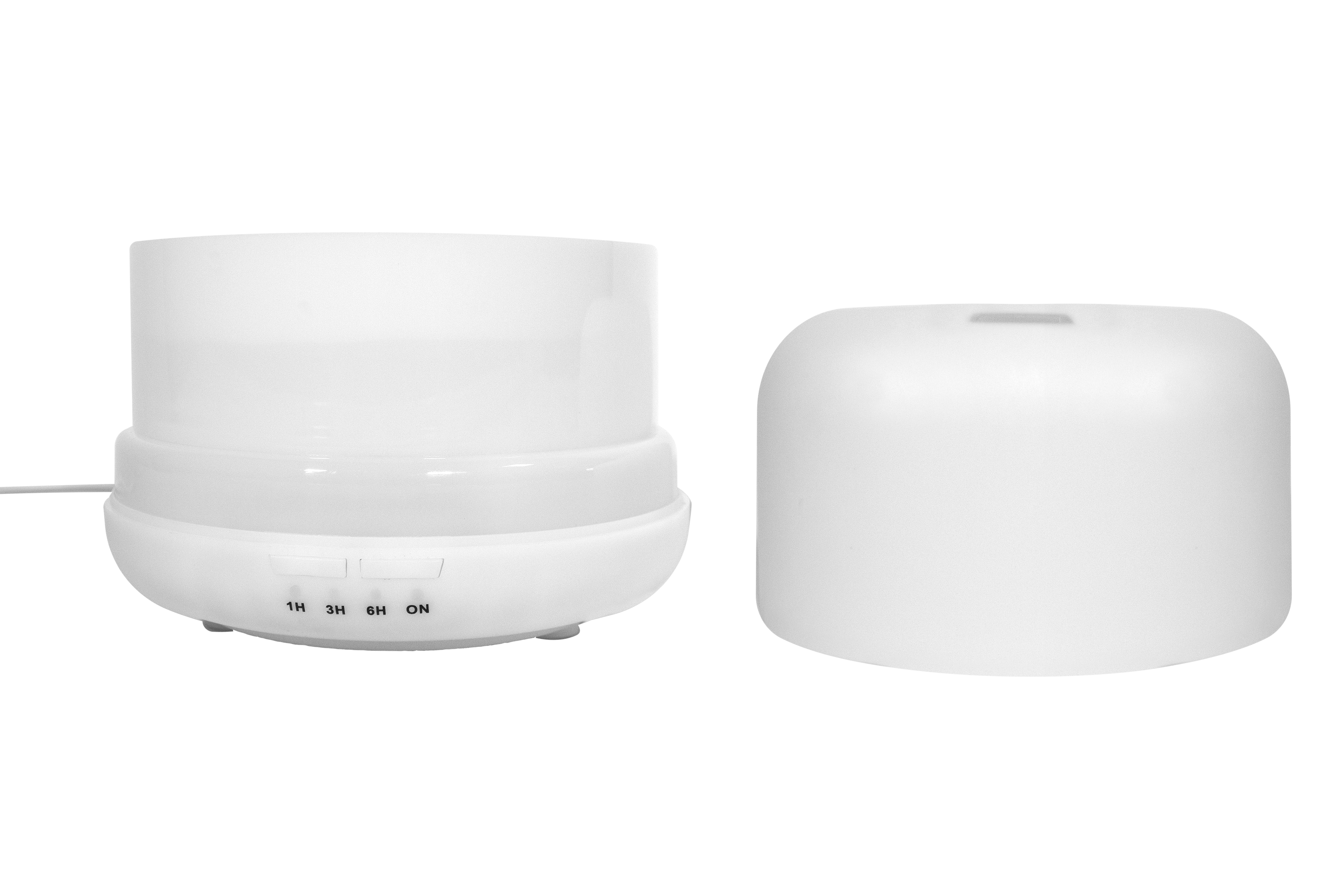 13,4 x 13,4 x 10,2 cm. Plástico ABS. Capacidad 300 ml. Aromatizador de ambiente con 7 tonalidades de luz que se van alternando. Cuenta con un timer (botón) que permite regular el tiempo de salida del vapor (1 hs, 3 hs o 6 hs).