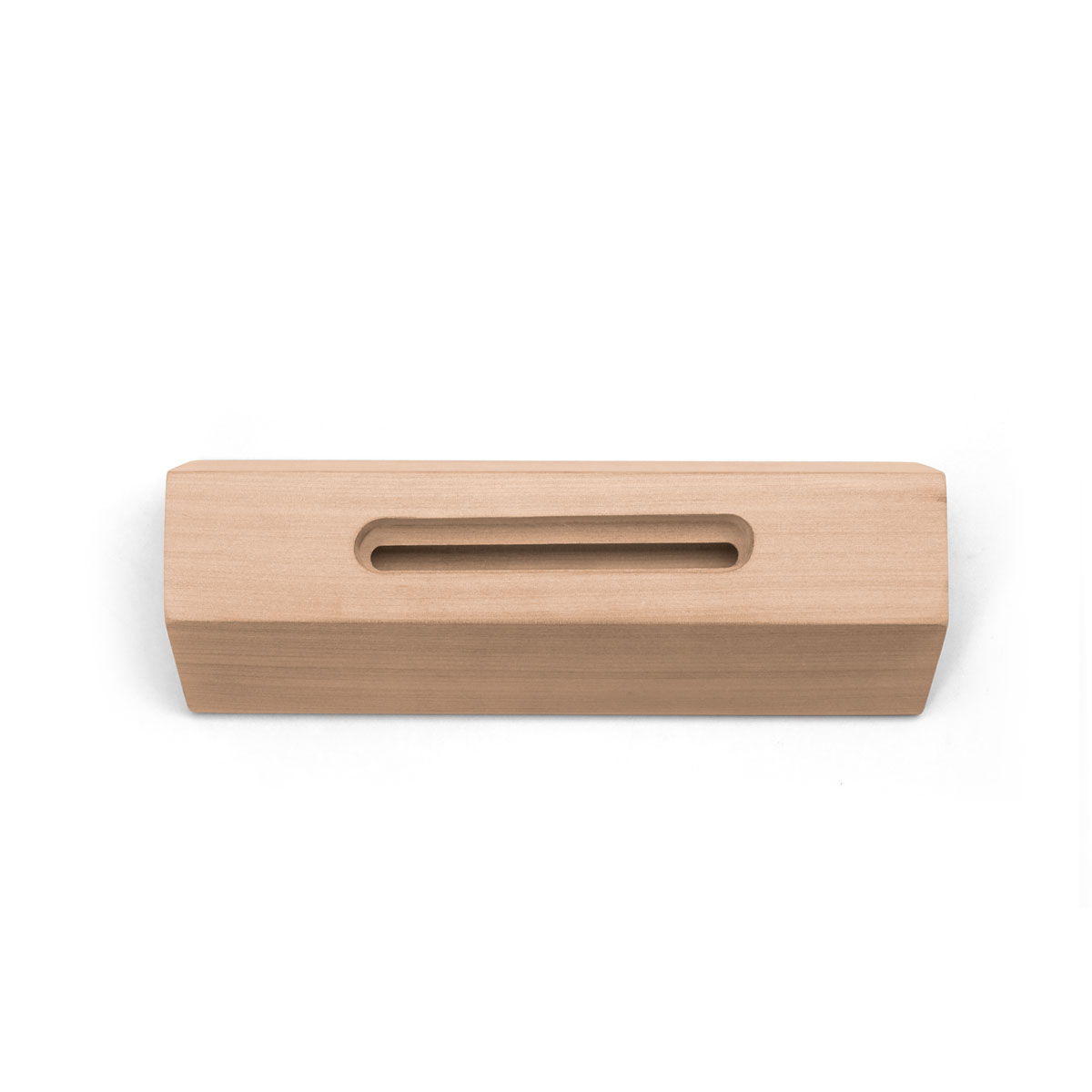 20 x 4,4 x 6,7 cm. La ranura para celular mide 10,4 x 1,3 cm.Madera Lenga Maciza.
