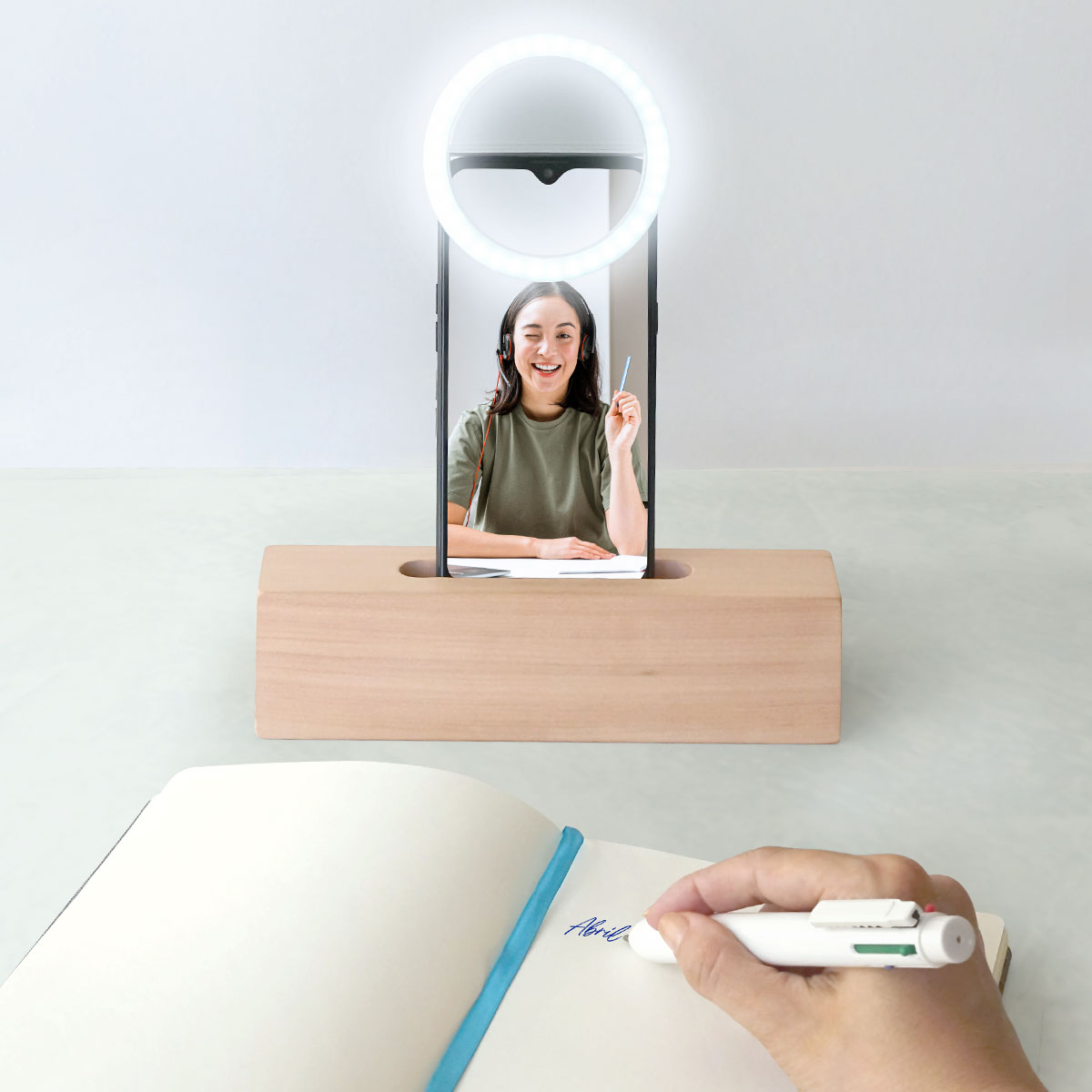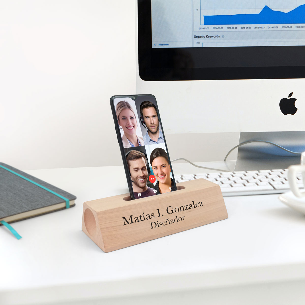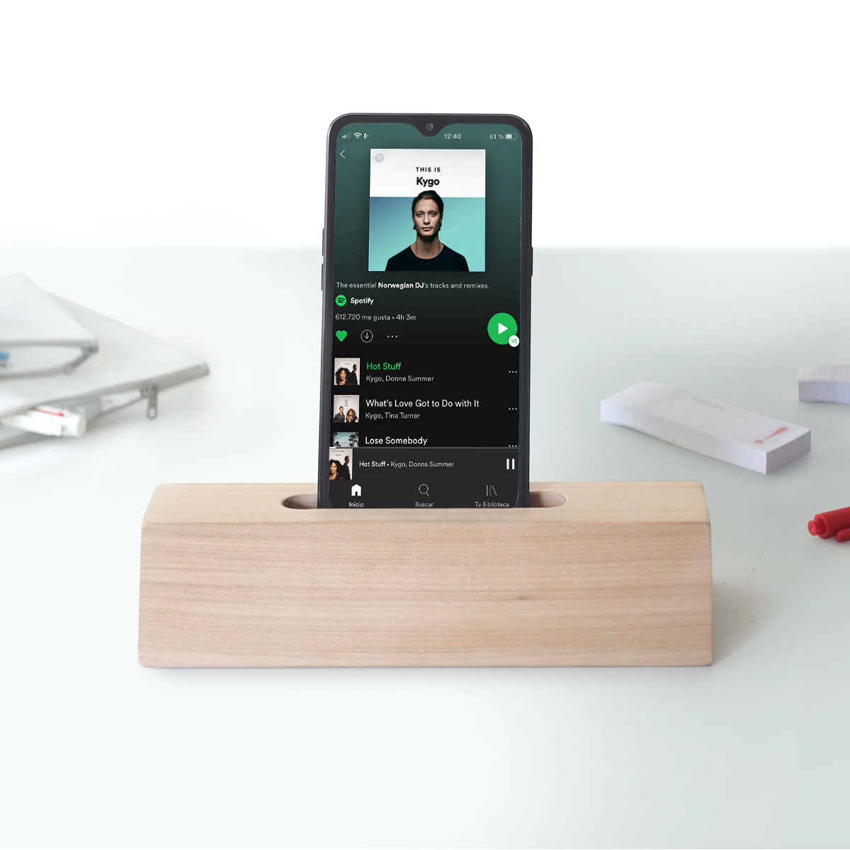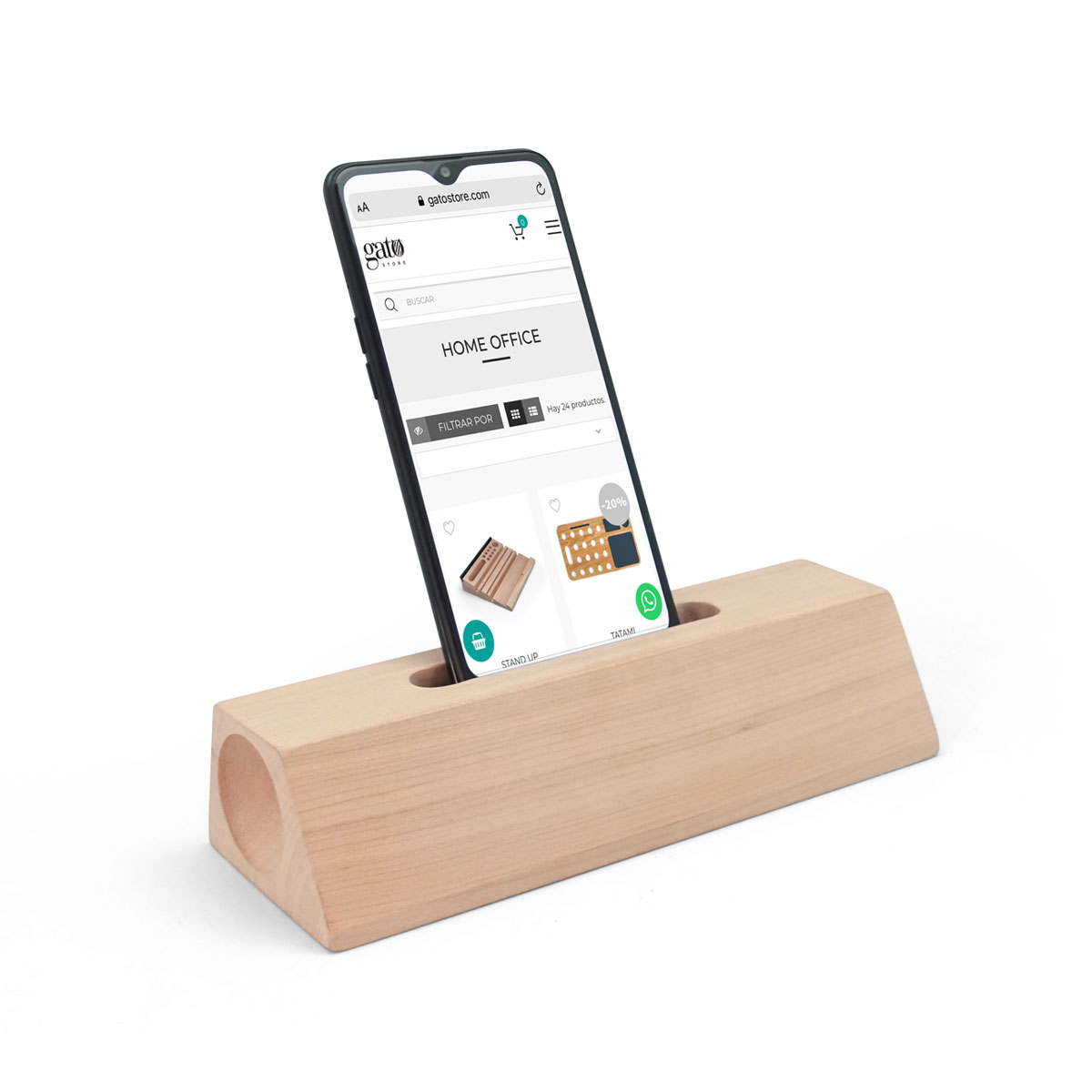 Soporte para celular con amplificación natural de sonido realizado en madera lenga con terminación lustre natural. Ideal para videollamadas! Presentación en caja de regalo.