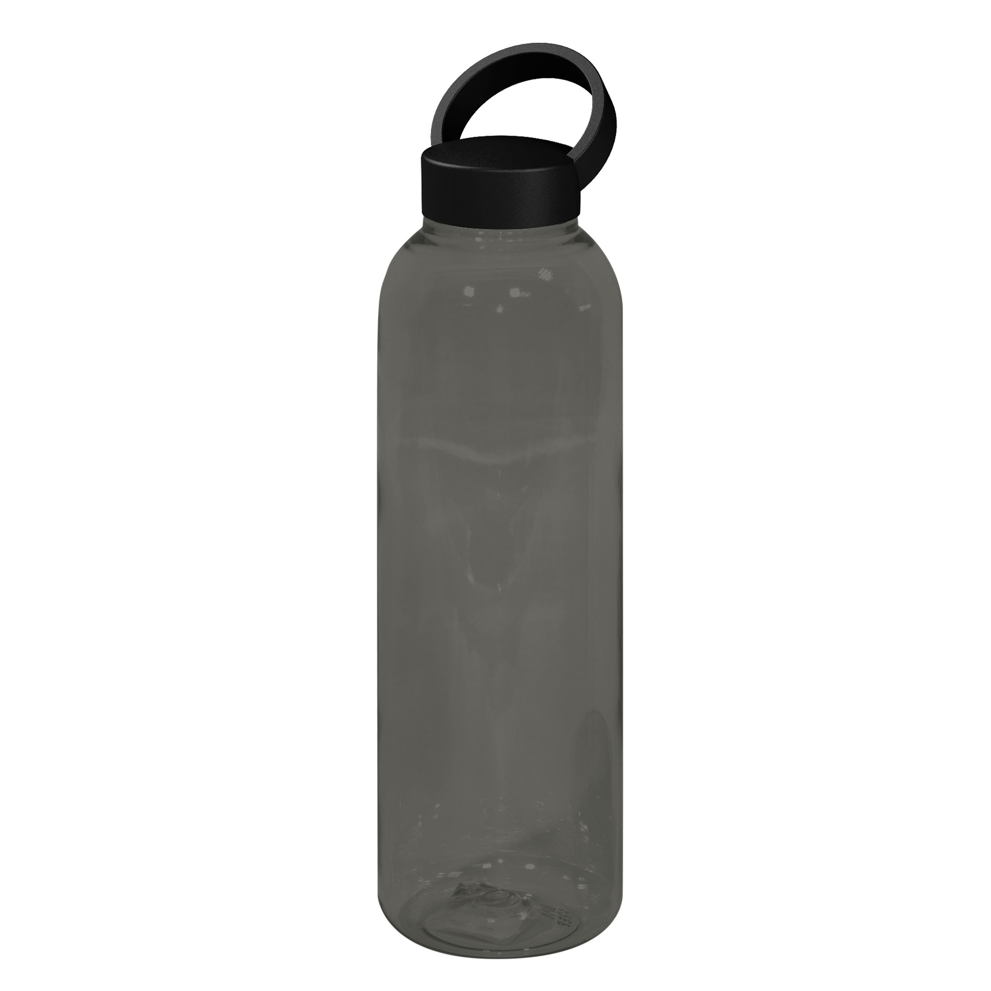 Botella de plástico color negro con tapa a rosca plástica.