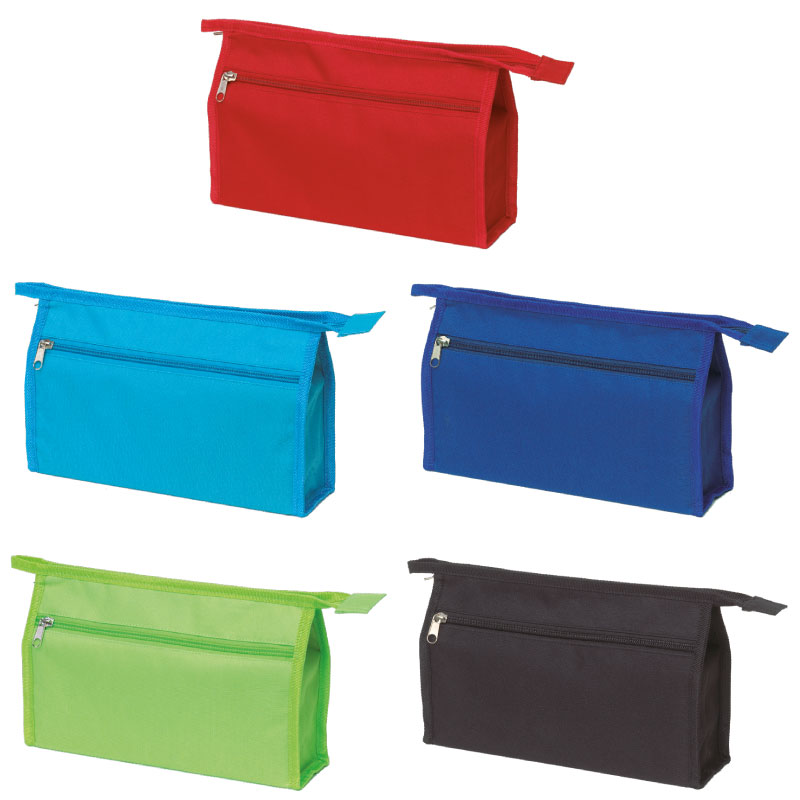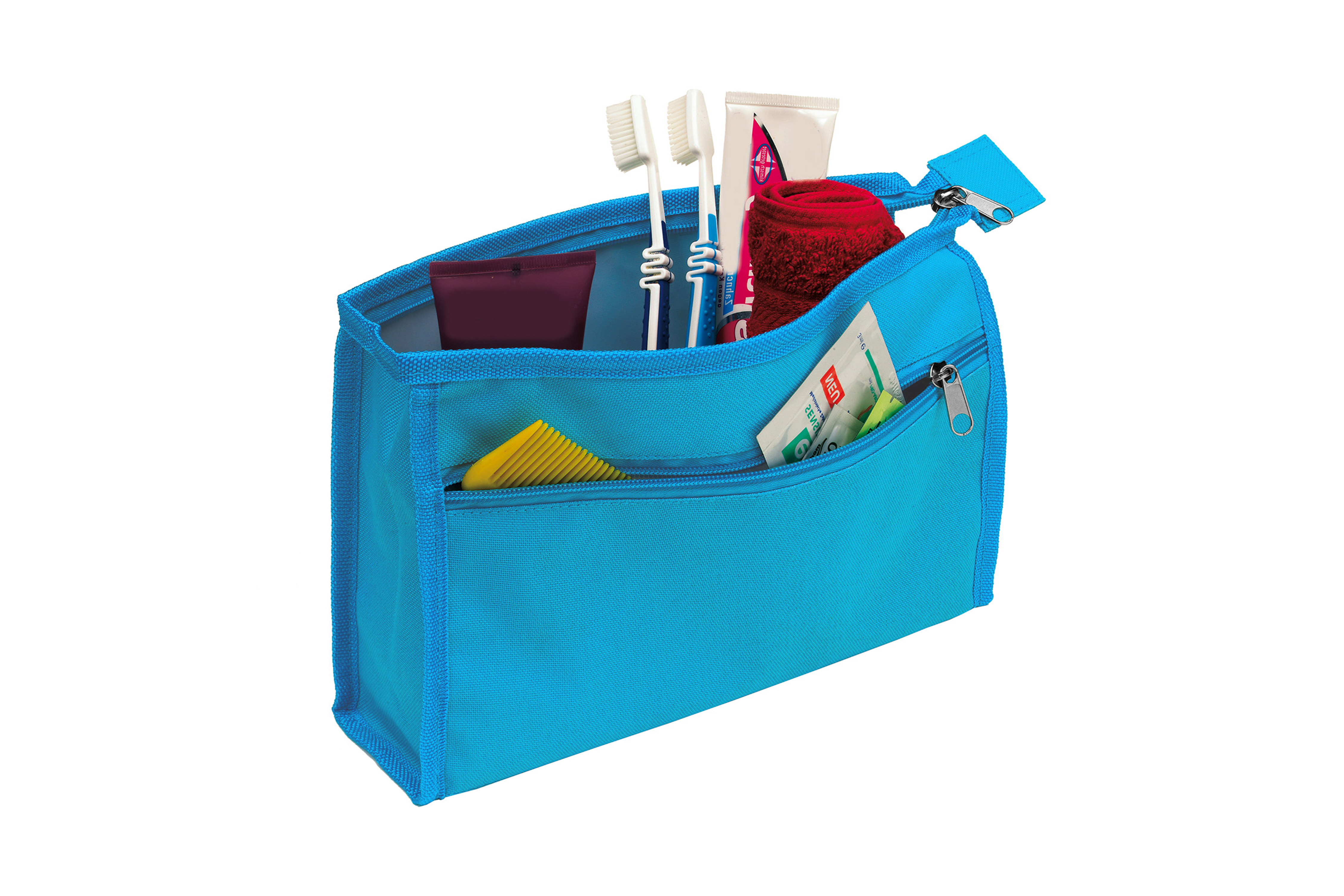 28 x 18 x 8,5 cm aprox. Polyester. Necessaire "Night & Day" con cierre y bolsillo frontal.