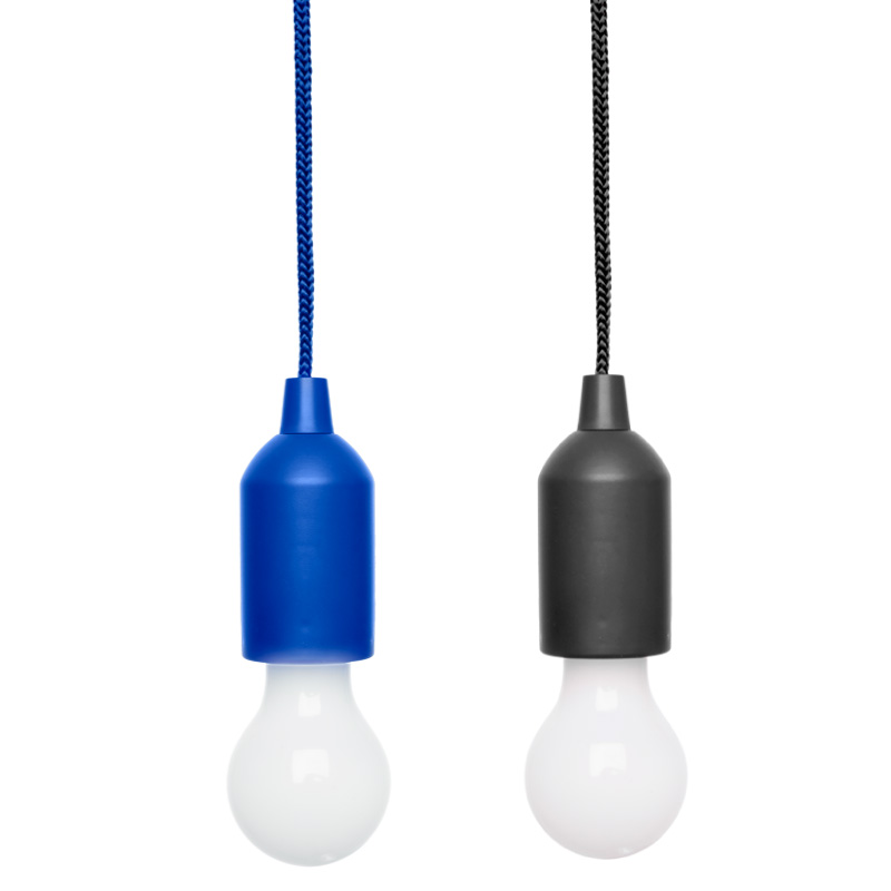 80 cm (largo del cordón). Plástico. Lampara con luz led. Contiene un lazo que al tirarlo enciende y apaga la luz de la bombilla. Utiliza 3 baterías AAA (no incluidas).