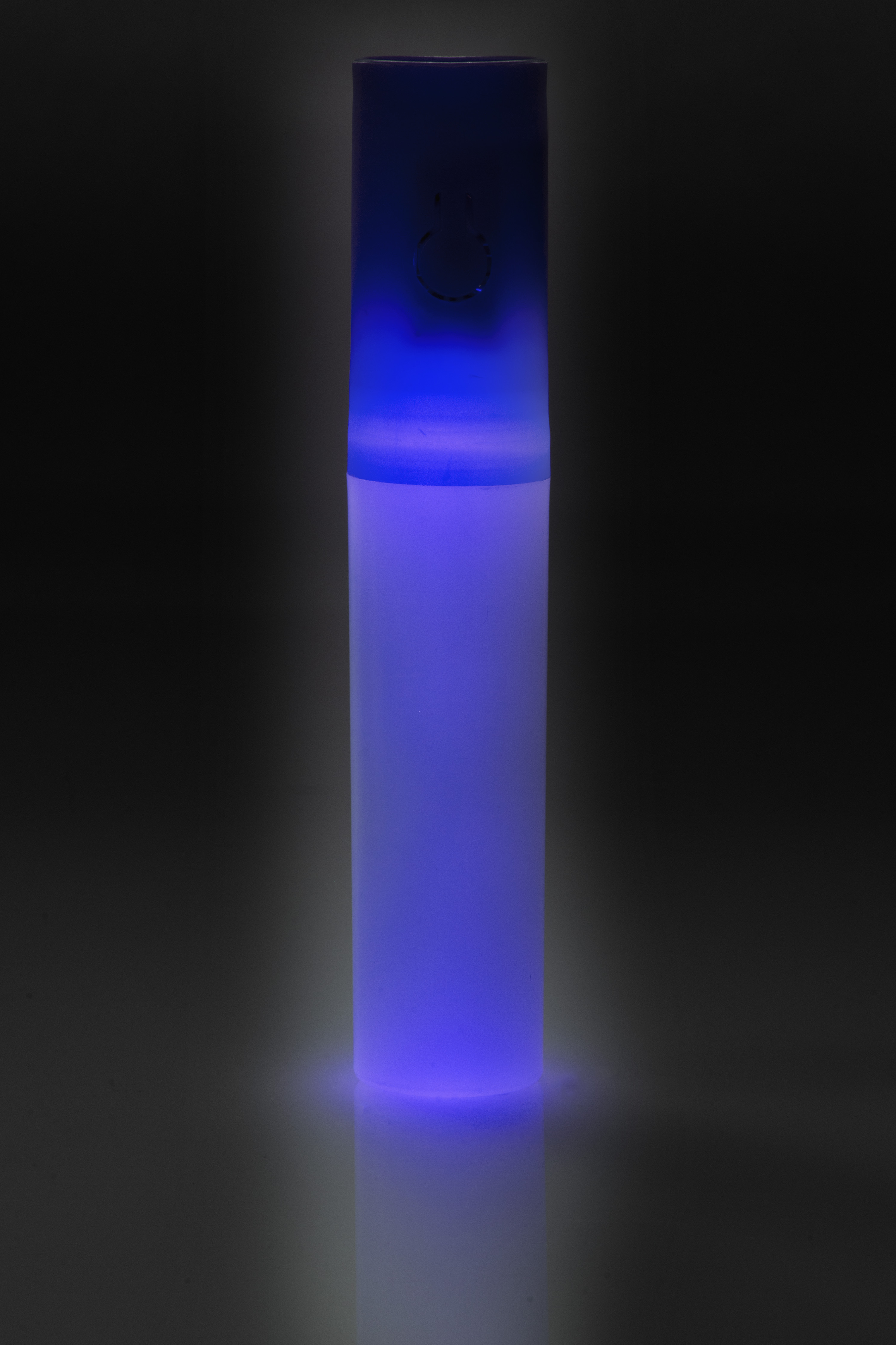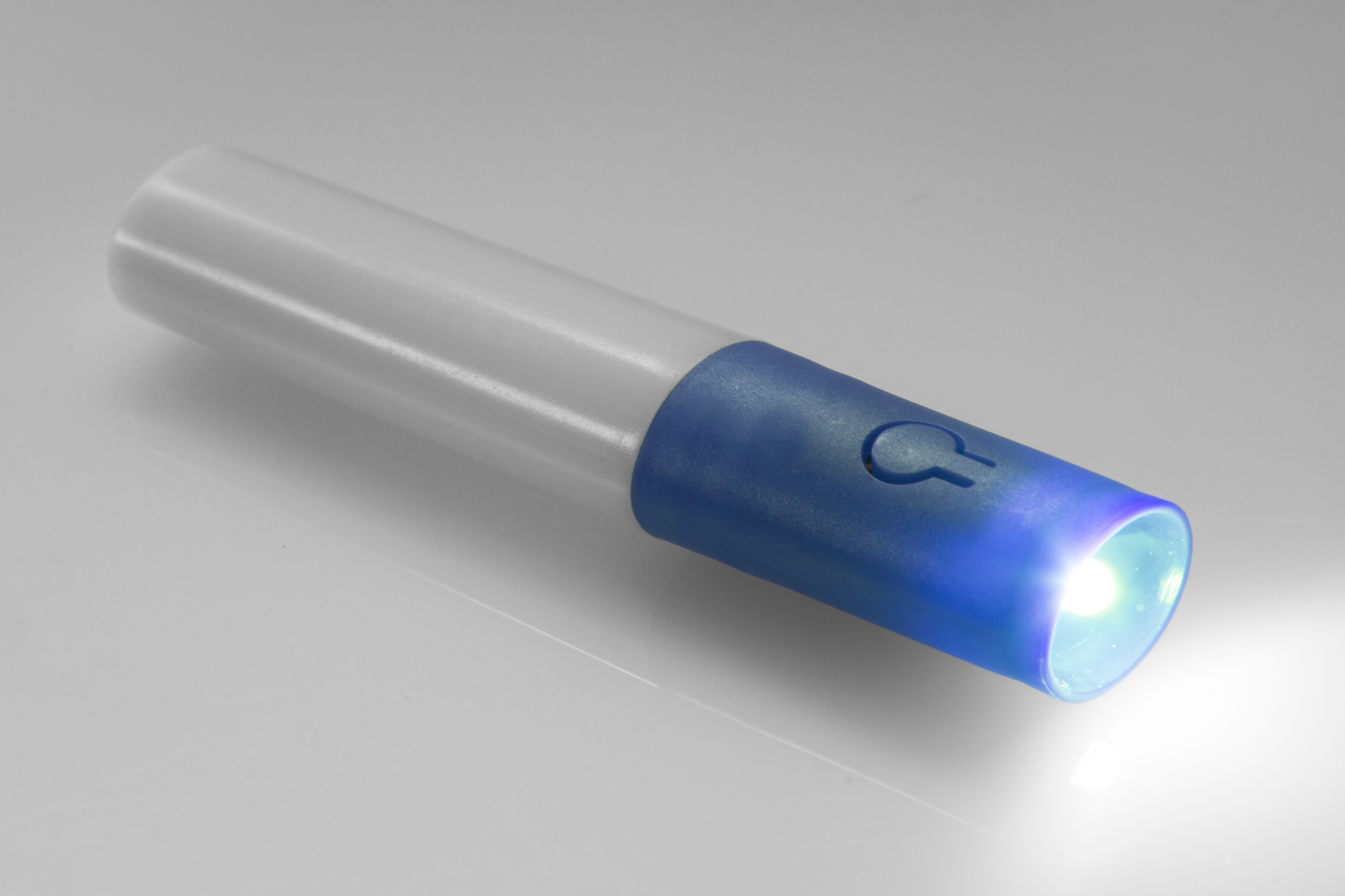 12 x 2 cm. Plástico. Linterna con luz led blanca y luz de color fija e intermitente. Presionando una vez el botón refleja luz led fija, pulsandolo dos veces el botón se enciende la luz del mismo color que el cuerpo de la linterna y presionado el botón tres veces enciende la luz de color de manera intermitente.